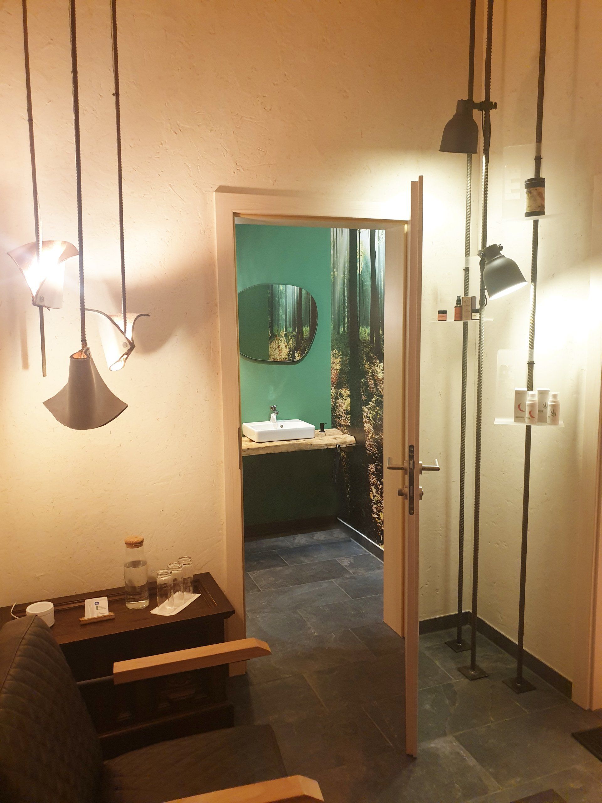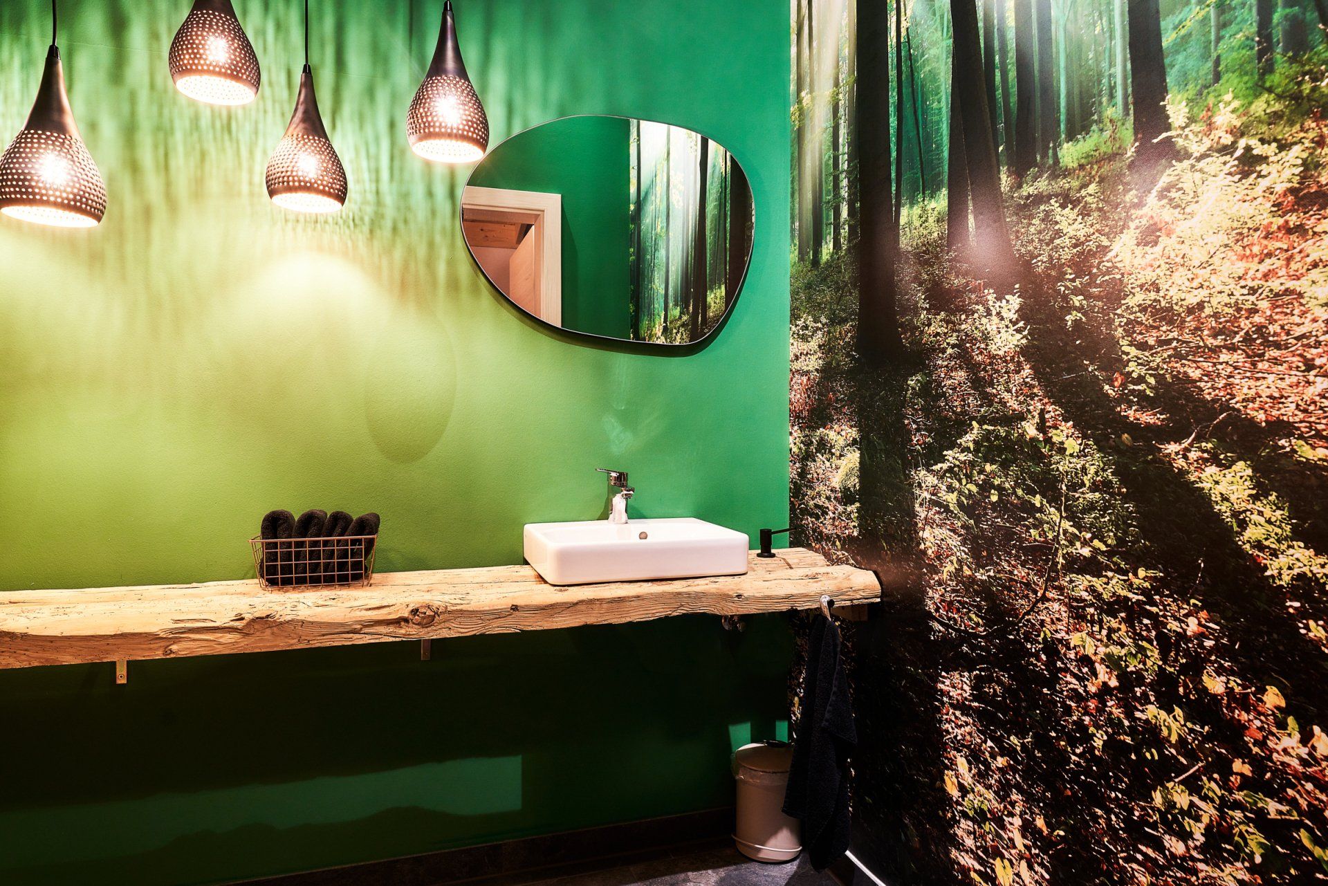 - WC barrierefrei mit Altholzwaschtisch und Bild- und Lichtgestaltung
